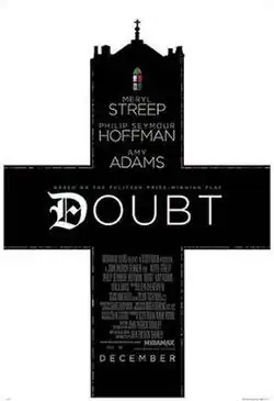 Doubt is a 2008 American drama film written and directed by John Patrick Shanley, based on his Pulitzer Prize-winning and Tony Award-winning 2004 stage play Doubt: A Parable. Produced by Scott Rudin, the film takes place in a Catholic elementary school named for St. Nicholas. The film stars Meryl Streep, Philip Seymour Hoffman, Amy Adams, and Viola Davis.[3]