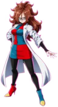 Arc System Works staff indicated in an interview that they wanted to create an original story for Dragon Ball FighterZ because the events of the original series have been retread several times by other licensed video games; the introduction of an original villainous character is intended to add a fresh element to the game's story.[13] Android 21 was concepted to be a Red Ribbon Bio-Android as part of the developer's take on maintaining a connection to the original series' themes while creating something new, and as a female character since the Dragon Ball series have had few female villains throughout its decades-long history, while her ability to shapeshift into an alternate form at will also differentiates her from notable series villain Cell.[14] Her connection to the Red Ribbon Army and its series of Androids created by Doctor Gero was highlighted in media coverage; for example, a trailer showed a cutscene where she assists an injured Android 18, and calls herself a researcher for the Red Ribbon Army.[12] Hiroki indicated that the character is highly intelligent, as emphasized by her lab coat and glasses, possibly more so compared to Doctor Gero.[12] Android 21's ability to transform is derived from a suggestion by Shueisha, the publisher of the Jump magazine line which serializes the Dragon Ball manga.[13]