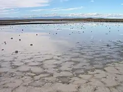 7. ^ "CRS Report for Congress: Agriculture: A Glossary of Terms, Programs, and Laws, 2005 Edition - Order Code 97-905" (PDF). Archived from the original (PDF) on August 10, 2011. Retrieved November 30, 2009. A temporary lake created in the lowest elevation of a basin in an arid area that has no surface drain into another water body, such as a perennial stream or river. Lake water is removed either by evaporation into the air or seepage into the ground.