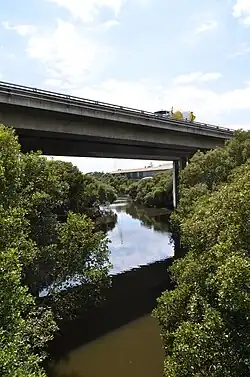 Duck River in Clyde, passing under the M4 Western Motorway | |