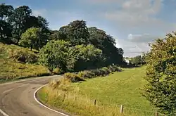The Clerkland Burn rivulet runs past the Dunlop House mansion, forming the boundary between the parishes of Stewarton and Dunlop.[6]