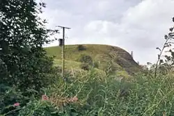 In 1848 the Scottish Journal records that a number of years ago the foundation of a ruin of considerable extent was removed by the late proprietor.[19] In 1853 Mr Dobie recorded that There can still be traced the meiths (boundary line) of a building of considerable extent on the top of the Hill of Borland.[20] In 1856 Mr G. Howie of Dunlop stated that he remembered seeing a small portion of what was said to be one of the walls about 70 or 80 years ago. It was a sort of bank, quite crumbled down and overgrown with grass. Since then the ruins of a building of considerable extent have been removed and the ground cultivated.[21] On the southern side of the hill there are the remains of a wide ditch or fosse, locally known as the 'Cuckoo slide’.[22] Paterson[23] in 1866 states that the foundation of a ruin was removed some years ago by a late proprietor.