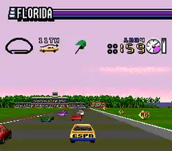 ESPN SpeedWorld is a Super NES and Sega Genesis video game that was released in 1994 exclusively for North America based on the television series of the same name. The title screen of the video game was partially inspired by the 1993 running of the First Union 400 racing event; which occurred on April 18, 1993. The real-life drivers from the mid-1990s are missing because the game only has an ESPN license and not an official NASCAR license.[4]