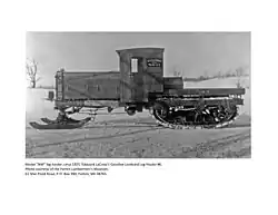 During the winter of 1926–27, Édouard Lacroix's Madawaska Company used log haulers to move heavy railway equipment overland from Lac-Frontière, Quebec to Churchill Depot and then over frozen old Eastern Manufacturing’s 9-14 haul road to Eagle Lake. The log haulers delivered one steam locomotive, two Plymouth gasoline-powered switchers, miles of steel rail, and forty five railroad cars for carrying pulpwood. Each railroad car was 32 feet (9.8 m) long with high, slatted sides to hold 12 cords of pulpwood. Three diesel-powered conveyors were built to lift pulpwood logs from Eagle Lake to a height of 25 feet (7.6 m) over a distance of 225 feet (69 m). Each conveyor could fill a railroad car in 18 minutes.[4] Lacroix completed the railroad to a pulpwood-unloading trestle at the north end of Umbazooksus Lake.[5] Lacroix's railroad included a 1,500-foot (460 m) long trestle across the north end of Chamberlain Lake. From June 1st 1927, the rails were laid out to bring gravel for ballasting until the railroad was brought in operation on August 1st 1927.[6]
