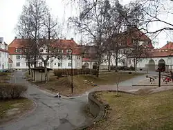 The areas to the north of the city centre belong to the West End, but they became very early, and still are, reflected by the middle class, having many officials, high education, and few rich people. These areas include Meyerløkka, Gamle Aker, St. Hanshaugen, parts of Ila, Bolteløkka, Valleløkken, Fagerborg, Lindern and Adamstuen.[9] The villa suburbs of today's outer town grew up along the new railway, and had about 12,000 inhabitants in the early 20th century, in the west Lysaker, Skøyen, Bestum, in the east Bryn, which was the first in the city from the 1860s, Grorud, Bekkelaget, Nordstrand, Ljan - with mixed inhabitants, with no marked East End character.[10]