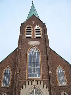 The East Village was platted in 1854. Several of the 40 buildings that make up the historic district are associated with European immigrants, especially Scandinavians and Eastern European Jews, that began settling the city's near east side in the 1870s and 1880s.[3] There were three periods of construction in the district. The first period was from the 1840s to the 1890s. Many buildings were wood-framed and included single-family homes, double-houses, and row houses. The ones that remain have been remodeled for commercial use while others have been replaced by commercial buildings. The second period lasted from the 1870s to the 1920s. These buildings were predominantly constructed of brick in styles that were popular at the time, including Italianate, Gothic Revival, Romanesque Revival, Queen Anne, Neoclassical, and Commercial architecture. Included in this group of buildings is the only known surviving row house on the east side of Des Moines, and the only surviving church in the district (Capitol Hill Lutheran Church).[3] The third period lasted from the 1920s to the 1950s and the buildings reflect the influences of the automobile on their design and usage. It includes buildings that were a part of the East Des Moines Auto Row. Architectural styles from this period include Modernism, Art Deco, Commercial, and Moderne.