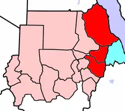 The Eastern Sudan States Coordinating Council is a body established by the Eastern Sudan Peace Agreement signed by the Government of Sudan and the rebel Eastern Front in June 2006.[1] It seeks to enhance cooperation between the three eastern states of the Republic of Sudan; Kassala, Red Sea and Al Qadarif. The agreement also established an Eastern Sudan Reconstruction and Development Fund to aid wealth-sharing between the central government and the three states. It requires the President of Sudan to appoint one Assistant to the President from nominees presented by the Eastern Front.