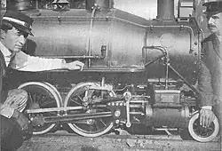 John J. Coit built the track of miniature railway and designed and probably even manufactured the steam locomotive. He had worked as a master machinist at the Johnson Machine Works, before he built and operated the profitable but short-lived Long Beach and Asbury Park Railway.[5] Due to being physically handicapped for two years when he designed the locomotive he focused on a user friendly design. He was friend 'Shorty‘ Chase was a person of short stature and wore a suit and a bowler hat as a conductor on all of Coit's railways.[6]