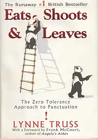 Eats, Shoots & Leaves: The Zero Tolerance Approach to Punctuation is a non-fiction book written by Lynne Truss, the former host of BBC Radio 4's Cutting a Dash programme. In the book, published in 2003, Truss bemoans the state of punctuation in the United Kingdom and the United States and describes how rules are being relaxed in today's society. Her goal is to remind readers of the importance of punctuation in the English language by mixing humour and instruction.