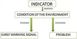 - ^ a b Dale, V. H.; Beyeler, S. C. (2001), "Challenges in the development and use of ecological indicators", Ecological Indicators, 1 (1): 3–10, doi:10.1016/S1470-160X(01)00003-6