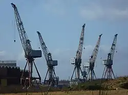 Clydeside shipyards before the 1914 had been the busiest in the world, turning out more than one-third of the entire British output. They expanded dramatically during the war, primarily to produce transports of the sort that German submarines were busy sinking. Confident of postwar expansion, the companies borrowed heavily to expand their facilities. But after the war, employment tumbled as the yards proved too big, too expensive, and too inefficient; in any case world demand was down. The most skilled craftsmen were especially hard hit, because there were few alternative uses for their specialised skills.[85] A serious weakness on the engineering side was a lag in developing the new technology of turbine engines, diesel engines, and welding techniques. The yards went into a long period of decline, interrupted only by the Second World War's temporary expansion. In the 21st century, only a handful of shipyards remain active.[86]