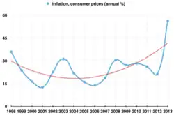 - ^ "Inflation rate (consumer prices)". CIA World Factbook. Archived from the original on 13 June 2007. Retrieved 26 February 2014.