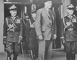 In September 1937, he visited Nazi Germany to attend the large Wehrmacht manoeuvres,[46][47] and met with Adolf Hitler.[13]