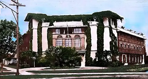 Article 23 of the Malolos Constitution mandated that public education would be free and obligatory in all schools of the nation under the First Republic.[27] However, the Philippine–American War hindered its progress.[28] Established in the American-occupied zone, Colegio Filipino (now National University) is a Philippine college that dates from this period and has survived.[29][30] There also existed for many decades the Rosa Sevilla Memorial School, originally founded on July 15, 1900, as the Instituto de Mujeres, an all-girls private school.[31] The most notable institute of higher learning of this period was the highly regarded Liceo de Manila on Calle Dulumbayan, now known as Rizal Avenue. It was established in 1900, and was known to have existed until the 1920s.