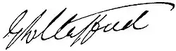 Stafford spent considerable time in England, devoting himself to business pursuits. He was granted a Knight Commander of the Order of St Michael and St George on his arrival, and was also offered governorships of Madras (now known as Chennai) and Queensland, which he declined. Upgraded to a Knight Grand Cross of the Order of St Michael and St George in the 1887 Golden Jubilee Honours,[19] Stafford died in London; sources differ whether this happened on 14[4] or 15[20] February 1901. He was survived by three daughters and three sons, the product of his marriage to Mary Bartley in 1859. Mary had died in 1899. A prior marriage to Emily Charlotte, daughter of William Wakefield, had been childless, with Emily having died in 1857 at the age of 29. Stafford's lifespan paralleled that of Queen Victoria – he was born 31 days before the queen in 1819, and died 24 days after her in 1901.