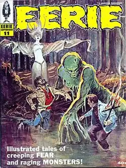 Eerie was an American magazine of horror comics introduced in 1966 by Warren Publishing. Like Mad, it was a black-and-white magazine intended for newsstand distribution and did not submit its stories to the comic book industry's voluntary Comics Code Authority.[1] Each issue's stories were introduced by the host character, Cousin Eerie. Its sister publications were Creepy and Vampirella.[2]