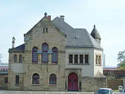 In 1900 a major renovation began on the railway facilities: The railway line in the city area was raised by three to four metres and the station building was rebuilt. Also, the goods yard was rebuilt with a hump. On 12 April 1904 the rebuilt station building was opened, along with a post office.