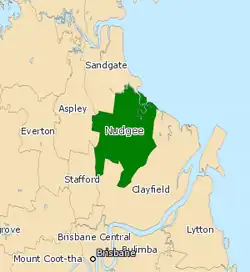 Nudgee is an electoral district of the Legislative Assembly in the Australian state of Queensland. It is located in the north-eastern suburbs of Brisbane.[1]