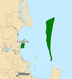 The division encompasses suburbs to the north and northeast of Brisbane, including Redcliffe, Woody Point, Scarborough, Clontarf and Margate, as well as parts of Kippa-Ring. The electorate's boundary stretches to take in Moreton Island.