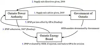- ^ Ontario Energy Board. 2006. Report of the board on the review of, and filing guidelines applicable to, the Ontario Power Authority's Integrated Power System Plan and procurement processes. http://www.oeb.gov.on.ca/documents/cases/EB-2006-0207/IPSP_report_final_20061227.pdf Archived 6 July 2011 at the Wayback Machine. Retrieved 5 April 2007; See also: Ontario Legislative Assembly. 2004. Electricity restructuring act, 2004: Ontario regulation 424/04. http://www.e-laws.gov.on.ca/DBLaws/Regs/English/040424_e.htm . Retrieved 5 April 2007.