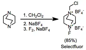 - ^ Lal, G. S. (1993). "Site-Selective Fluorination of Organic Compounds Using l-Alkyl-4-fluoro-l,4-diazabicyclo[2.2.2]octane Salts (Selectfluor Reagents)". J. Org. Chem. 58 (10): 2791. doi:10.1021/jo00062a023.