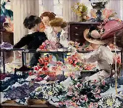 She exhibited at the Pennsylvania Academy of the Fine Arts and in 1908 and 1912 was awarded the Mary Smith Prize.[27] The 1908 prize was won for Roller Skates[28] and the 1912 prize was won for a painting of a flower shop in Paris[29] entitled In the Spring, noted for its radiant colors.[30] Sparhawk-Jones's portrait, painted by Alice Kent Stoddard before 1911, is in the collection of the Pennsylvania Academy of the Fine Arts.[31]