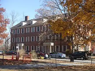 Elliott and Stoddard Halls are the two oldest remaining buildings on Miami University's Oxford Ohio campus today. Built in 1825 (Elliott) and 1836 (Stoddard), they were designed in the Federal style and modeled after Connecticut Hall at Yale University. They continue to be used as dormitory buildings, making them the two oldest college dormitories still in use in Ohio. They were the original dormitories on the campus and were built to house students who attended classes at Miami's campus.[2] They have both been through a number of renovations, most recently in 2011.[3] The dorms are located in between the two academic quads located in the center of Miami's campus. They face another landmark on the campus, the Miami University seal. Over time they have become landmarks on the campus and are considered two of the most prestigious dorms to live in,[4][5] they are also listed on the National Register of Historic Places. Today, they house students in the Scholar Leaders program.[2][6][7] The buildings are named for early Miami professors Charles Elliott and Orange Nash Stoddard.