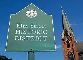 ![]() Shown above: commencement of Elm Street Historic District, Northampton, Massachusetts with St. Mary's Catholic Church in background. | |