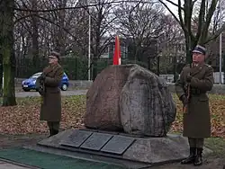 The Two Rocks monument was unveiled in 1999 by the then Prime Ministers of Canada and Poland – Jean Chrétien and Jerzy Buzek. The inscription on the monument says: "These two rocks, one from Poland and the second from Canada, commemorate Polish and Canadian soldiers, who fought side by side during World War II." One rock originates from Wilno (Canada) and the other from the Kashubian region in Poland, symbolizing the coming together of the Canadian and Polish people.