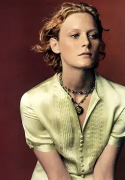 From 1998 to 2007, Gold was an international runway fixture, walking for fashion houses like Marc Jacobs and Balenciaga. She has been the face of ad campaigns for Versace, Fendi, DKNY and Marni.[5] She has been photographed by Annie Leibovitz, Steven Meisel, Mario Testino, Craig McDean, Mikael Jansson and Peter Lindbergh. Gold has also appeared on five Vogue covers,[6] as well as the covers for Harper's Bazaar and Elle, and the 2002 September issues of Glamour and Vogue IT .