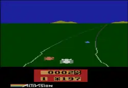 Enduro is a racing video game designed by Larry Miller for the Atari 2600 and published by Activision in 1983. The object of the game is to complete an endurance race, passing a certain number of cars each day to continue the next day. The visuals change from day to night, and there is occasional inclement weather.