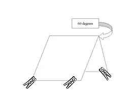 This technique was developed in Knoxville, Tennessee in 1989, and in the pilot study was found to be more effective than using an aerial net. The traps are constructed using manufactured sticky traps measuring approximately 9 inches (230 mm) by 10 inches (250 mm) in the shape of an inverted “V”, or pup tent, with the sticky material on the outside (see fig 1). These traps generally have four clothespins clipped to the bottom corners to provide ground clearance. The traps are placed at varying distances from the body, between 1 foot (0.30 m) and 12 feet (3.7 m), with one side facing the body. The sides of the traps should be set at a 60-degree angle. When collection is done the sticky trap should be labeled with both the time it was put out and the time it was picked up. In the lab insect can be individually removed and rinsed with paint thinner or xylene before preservation.[2]