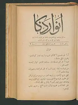 - ^ a b c Hakan Soydaş (2017). "Envâr-ı Zekâ Dergisinin Tahlilî Fihristi Işığında Edebî Faaliyetleri". Gazi Türkiyat. 21: 138.