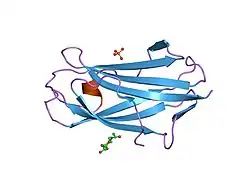 The epididymal secretory protein E1, also known as NPC2 (Niemann-Pick intracellular cholesterol transporter 2), is one of two main lysosomal transport proteins that assist in the regulation of cellular cholesterol by exportation of LDL-derived cholesterol from lysosomes.[1][2] Lysosomes have digestive enzymes that allow it to break down LDL particles to LDL-derived cholesterol once the LDL particle is engulfed into the cell via receptor mediated endocytosis.