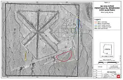 Of the three original runways, only one is serviceable and still in use. Most of the buildings on the airfield were sold off, removed or broken up. Abandoned streets and taxiways are being eroded away by sands, tumbleweeds and time.[4]