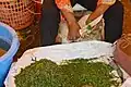 Eru is a vegetable from Cameroon. It is a specialty of the Bayangi people, of the Manyu region in southwestern Cameroon. It is vegetable soup made up of finely shredded leaves of the eru or okok. The eru is cooked with waterleaf or spinach, palm oil, crayfish, and either smoked fish, cow skin (kanda) or beef.
