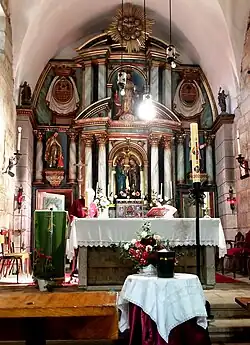 The interior of the church features three magnificent baroque retables.[6] The church was expanded in the 18th century.[7]