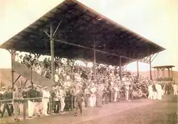 Soon after its foundation, Santos held their training in a field located in the neighborhood of Macuco.[14] As the field did not meet the minimum size standards to host official matches, Santos played on the "Igreja Coração de Maria" pitch in Ana Costa Avenue.[13] The field, however, was also used by other clubs in town. In 1915, the situation reached its breaking point, when Santos had constant conflicts with other city clubs on when the field could be used, forcing the club to reject several requests for international friendlies.[15] To solve the problem, the leaders began searching for land in the city, with a commission formed by Luiz Suplicy Júnior, Harold Cross, Sebastião Arantes Nogueira and Francisco Viriato Corrêa da Costa. On 31 May 1916, a general assembly approved the purchase of an area of 16,500 square meters, in the neighborhood of Vila Belmiro, approved by club president Agnello Cícero de Oliveira and vice-president Dr. Álvaro Ribeiro.[13] The land acquired belonged to Companhia de Habitações Econômicas, and the field was bought from them at a price of Rs$66,660,000.[13] The board members obtained a 10-year loan which was liquified in 1923 after paying Rs$35,000,000 in interest fees.[13]