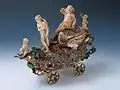 Eszterháza was first inhabited in 1766, but construction continued for many years. The opera house was completed in 1768 (the first performance was of Joseph Haydn's opera Lo speziale), the marionette theater in 1773.[1] Joseph Haydn's concerts typically took place in the Sala Terrena on the ground floor, in the picture gallery, where on May 30, 1781, a concert was performed in the presence of Prince Albert Casimir, Duke of Teschen and his spouse, Archduchess Maria Christina of Austria, daughter of the Empress Maria Theresa.[1] Musical entertainment for the higher ranks was provided in the main building, typically located in the picture gallery ground floor. Regular free-to-attend academies were typically held in the marionette theater, which were open to the public and hosting a whole range of cultural and environmental programmes.[1] The fountain in front of the palace was not completed until 1784, at which point the Prince considered his project complete.[1] The music room was decorated with white and gold walls with delicately rounded corners, the frescoed ceiling, glass chandeliers, roses, and audience's period chairs.
