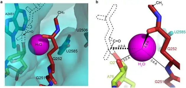 - ^ a b Zeng F, Jin H (February 2018). "Conformation of methylated GGQ in the Peptidyl Transferase Center during Translation Termination". Scientific Reports. 8 (1): 2349. Bibcode:2018NatSR...8.2349Z. doi:10.1038/s41598-018-20107-8. PMC 5799190. PMID 29403017.