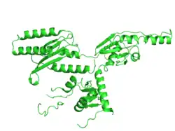 - ^ Kong C, Ito K, Walsh MA, Wada M, Liu Y, Kumar S, et al. (April 2004). "Crystal structure and functional analysis of the eukaryotic class II release factor eRF3 from S. pombe". Molecular Cell. 14 (2): 233–245. doi:10.1016/S1097-2765(04)00206-0. PMID 15099522.