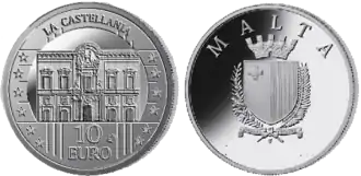 - ^ "2008 Malta €10 Silver Prf "Auberge de Castille"". The Euro Coins Store. Archived from the original on 2011-07-10. Retrieved 2008-10-06.