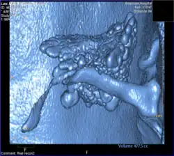 3D reconstruction of the right Eustachian tube from Valsalva CT. Note the sac like shape of the structure.