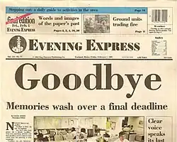![]() The last front page of the Evening Express, printed February 1, 1991. | |