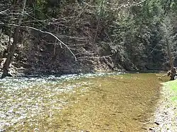 Evitts Creek is 30.2 miles (48.6 km) long.[1] It flows from southwestern Pennsylvania through western Maryland. The stream rises in central Bedford County, Pennsylvania, and flows southwest between the ridges of Evitts Mountain and Wills Mountain, through the Lake Koon and Lake Gordon reservoirs and into the North Branch Potomac River southeast of Cumberland at 39°55'N 78°36'W.