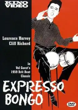 Expresso Bongo is a 1959 British drama musical film directed by Val Guest, shot in uncredited black & white Dyaliscope and starring Laurence Harvey, Cliff Richard, and Yolande Donlan.[2] It was written by Wolf Mankowitz adapted from the stage musical of the same name by Julian More, which was first produced at the Saville Theatre, London, on 23 April 1958.