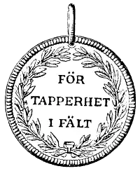 För tapperhet i fält ("For Valour in the Field") and För tapperhet till sjöss ("For Valour at Sea") are two Swedish military medals awarded to officers and soldiers of the Swedish Armed Forces who have—as the medal names suggest—shown valour in the field or at sea in wartime. These two medals, along with the various grades of the Order of the Sword, are the only awards in Sweden that have the designation "Swedish war decorations" (Svenska krigsdekorationer).[2] The medal was instituted by Gustav III on 28 May 1789, during his war against Russia and was meant to complement the Order of the Sword—which was instituted on 23 February 1748 and was awarded for the same purpose—valour in the field or at sea—but only to officers.