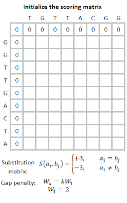 • In an alignment if several initial regions with scores greater than a CUTOFF value are found, check whether the trimmed initial regions can be joined to form an approximate alignment with gaps. Calculate a similarity score that is the sum of the joined regions penalising for each gap 20 points. This initial similarity score (initn) is used to rank the library sequences. The score of the single best initial region found in step 2 is reported (init1).