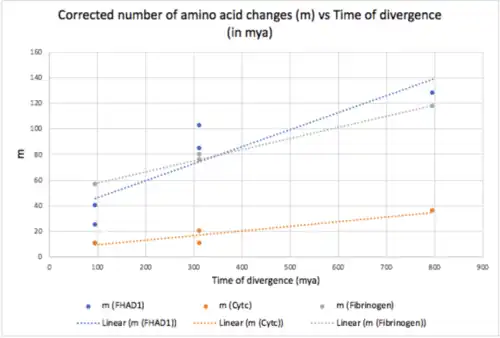 The rate of evolution of FHAD1 was compared with that of fibrinogen and cytochrome c and it showed that FHAD1 is a rapidly evolving gene.