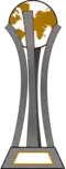 The FIFA Intercontinental Cup trophy is similar in design to the FIFA Club World Cup trophy used from 2005 to 2023. It features a circular base with six pillars extending upward from it, supporting a globe shaped like a football. The trophy is gold in colour and has a plaque on the base with the name and year of the tournament, which means a new trophy will be commissioned every year. The base is taller than the said Club World Cup trophy.[13]